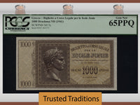 TT PK M17a 1941 GREECE / IONIAN ISLANDS 1000 DRACHMAI "CAESAR" PCGS 65 PPQ GEM !